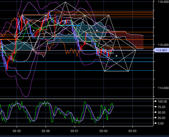 R2 115.543 S3 114.120今夜は、ロシア・ウクライナ和平協議やパウエルFRB議長議会証言、ADP雇用統計など重要イベントが控えます。方向感に欠けるドル円ですが、米指標次第でピボット突破もあるか、注目🧐
